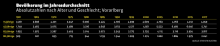 1970 lag die Lebenserwartung bei Männern in Vorarlberg bei 68,5 Jahren und bei Frauen bei 75,2 Jahren – 2017 bei Männern bei knapp 80 Jahren und bei Frauen bei 84,6 Jahren.#