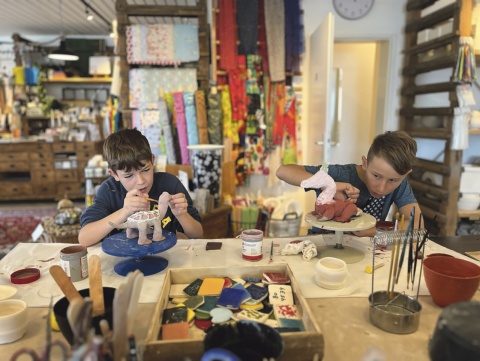 Bei Gabriele Falb wird erlebbar, wie Kinder und Erwachsene – ohne irgendwelche kreativen Absichten – sich plötzlich in dieser Atmosphäre inspiriert fühlen. „Oftmals besuchen sie dann einen Ton-, Druck- oder Mal-Workshop, ohne zu wissen, was sie machen sollen. Aber dann entsteht etwas einfach aus sich heraus“, sagt Falb und betont weiter: „Immer wieder gibt es dann ein Aha-Erlebnis, ,ich bin ja kreativ, ich kann das‘. Bei Erwachsenen ist dies meist noch ausgeprägter, weil sie von früher oft noch so konditioniert sind, nichts sogenanntes ,Schönes‘ hervorzubringen.“
