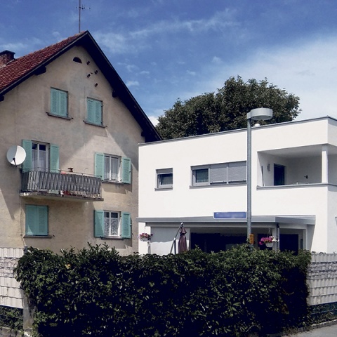 Angesichts der beträchtlichen Anzahl an Einfamilienhäusern auf großzügig parzellierten Grundstücken schlummert hier die private Wohnbautätigkeit der nahen Zukunft. Auf den rund 1000 Quadratmetern einer in den 1970er- oder 1980er-Jahren mit einem Einfamilienhaus bebauten Liegenschaft lässt sich bei geschickter Anordnung noch ein zweites und drittes Einfamilienhaus platzieren. Mangels leistbarer Grundstücke und der Verknappung von Bauland wohnt die junge Vorarlberger Familie dann nicht mehr im Gemeinschaftshaus, sondern im „nachverdichteten“ Gemeinschaftsgrundstück.