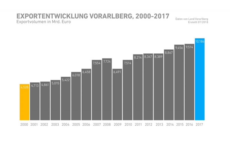 Vorarlberg liegt inmitten dieser Welt als Insel des Friedens, eines beachtlichen Wohlstands, der sich auf außerordentliche wirtschaftliche Leistungsfähigkeit und eine bemerkenswert gute Infrastruktur stützen kann, und eingerahmt von einer mehr oder minder ähnlich erfolgreichen Nachbarschaft jenseits der Grenzen. Nichts möchte man mehr wünschen, als dass es so bleibe. Aber natürlich ist Vorarlberg auch keine Insel, sondern den Kräften des Weltgeschehens ausgesetzt. Das Land hat es aber bis jetzt verstanden, die Entwicklungen der Welt besonders erfolgreich und vorbildlich zu nutzen und zu meistern. Es ist etwa, was anderswo ein schwieriges Strukturproblem gewesen ist, von einer stark textil-lastigen Industrie erfolgreich umgestiegen auf eine Wirtschaft, die etliche Standbeine hat und hat diese erfolgreich verstärkt. Ich will Ihnen nicht eine lange Liste eindrucksvoller Unternehmen – nicht nur in der Industrie, sondern auch in Handwerk, Tourismus, der Landwirtschaft, Architektur und in kulturellen und persönlichen Dienstleistungen – präsentieren.