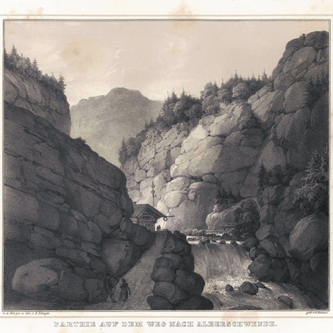 18. November. Wir fuhren um 8 Uhr von Bregenz fort – meine Frau und ich. Je weiter wir kamen, desto schlechter wurde der Weg. Schon die Strecke von Lautrach bis Wolfurt konnte und sollte viel beßer sein. Von Wolfurt bis Schwarzach gings noch herber. Die neue Schwarzachtobelstraße vom Ausmündungspunkt bis zur ersten Brücke ist ganz ausgefahren. Von dort bis zum Wirthshaus am Fall könnte sie viel beßer sein; von dort bis zur alten Straße auf dem Alberschwendergebiethe ist sie noch elender – endlich von dort an bis zur Kirche ganz schlecht. Weiter hinein gegen Egg soll sie vollends unter aller Kritik sein.