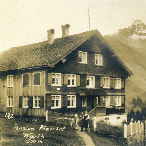 In der Zeit nach dem Ersten Weltkrieg begann sich der Fremdenverkehr in Warth langsam zu entwickeln. Eine wichtige Pionierrolle nahm dabei ein weiterer Geistlicher ein, der aus Kössen in Tirol stammende, 1883 geborene Pfarrer Josef Essl. Er begann 1924, Gäste in der sogenannten „Pension Pfarrhof“ zu bewirtschaften. Ein Jahr später erhielt Essl die Konzession zum Betrieb einer Fremdenpension. Über die Erweiterung dieser Konzessionsurkunde hat sich aus dem Sommer 1926 ein umfangreicher Schriftverkehr erhalten. Pfarrer Essl stellte beim Amt das Ansuchen um Ausschank von Wein und Bier an seine nächtigenden Pensionsgäste sowie an durchreisende Passanten. An Letztere deshalb, weil dieselben bei mir Einkehr halten und ein Aufenthalt nicht geplant ist, wenn die Witterungsverhältnisse günstig sind. Seiner Meinung nach, und dabei schloss er auch verschiedene Faktoren der Gemeinde und übriger fremdenverkehrsfreundlichen Stellen mit ein, welche die Verhältnisse in Warth und seinem Betrieb kannten, würde nichts gegen eine Ausdehnung der Konzession sprechen, da an Einheimische keine geistigen Getränke verabreicht würden, da dafür die Lokalwirtschaft Huber, zum „Tirolerhof“, bestünde. Neben dem Gendarmeriekommando schalteten sich der Weihbischof von Feldkirch und die Gemeinde ein. Mehrere Zuschriften deutscher Verbände sowie der Universität Berlin lobten den Pfarrer als Gastgeber, brachten für ihn aber nicht das gewünschte Ergebnis. Pfarrer Essl hatte offenbar genug und verließ Warth 1928. Nach seinem Weggang wurde auch die Beherbergung von Gästen im Pfarrhof beendet.