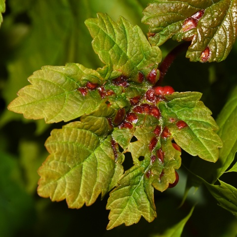 Dies wäre der Idealfall. Aber eine kleine Erzwespenart mit Namen Dichatomus acerinus parasitiert die kugeligen Blattgallen und legt in ihnen jeweils ein Ei ab. Durch den „Untermieter“ (Inquiline) verwandeln sich die glatten Kugeln zu massiven, holzigen Gebilden mit zipfelartigen Fortsätzen. Die Larve der Ahorngallwespe verliert dadurch ihre Nahrungsgrundlage, und möglicherweise wird sie auch durch das nachträgliche, übermäßige Wachstum der Galle erdrückt. Aber es geht noch etwas komplexer. In wärmebegünstigten Regionen nördlich der Alpen – zum Beispiel am Oberrhein nördlich von Basel – konnte sich in den letzten Jahren der kleine Ahornrüssler (Curculio vicetinus) etablieren. Dieser vermutlich ursprünglich im asiatischen Raum beheimatete Käfer benötigt für seine Fortpflanzung Gallen der Ahorngallwespe Pediaspis aceris, die von der Erzwespe Dichatomus acerinus als Inquiline befallen und verändert worden sind. So dient die Wucherung am Blatt des Bergahorns gleich drei unterschiedlichen Arten als „Babystube“. Ob der Ahornrüssler allerdings bereits in Vorarlberg angekommen ist, entzieht sich unserer Kenntnis. Möglich wäre es, denn wärmeliebende Tierarten, die sich am Oberrhein etablieren konnten, finden immer häufiger den Weg den Hochrhein entlang Richtung Bodensee und weiter ins Alpenrheintal. Es bleibt spannend, welche Überraschungen die Natur in Zukunft für uns bereithält.